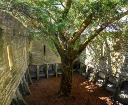 After about a kilometre, the path turns right into Yew Valley Wood, leading to the 15th-century Muckross Abbey. Explore the abbey’s well-preserved ruins and vaulted cloister, once the burial site of local chieftains.